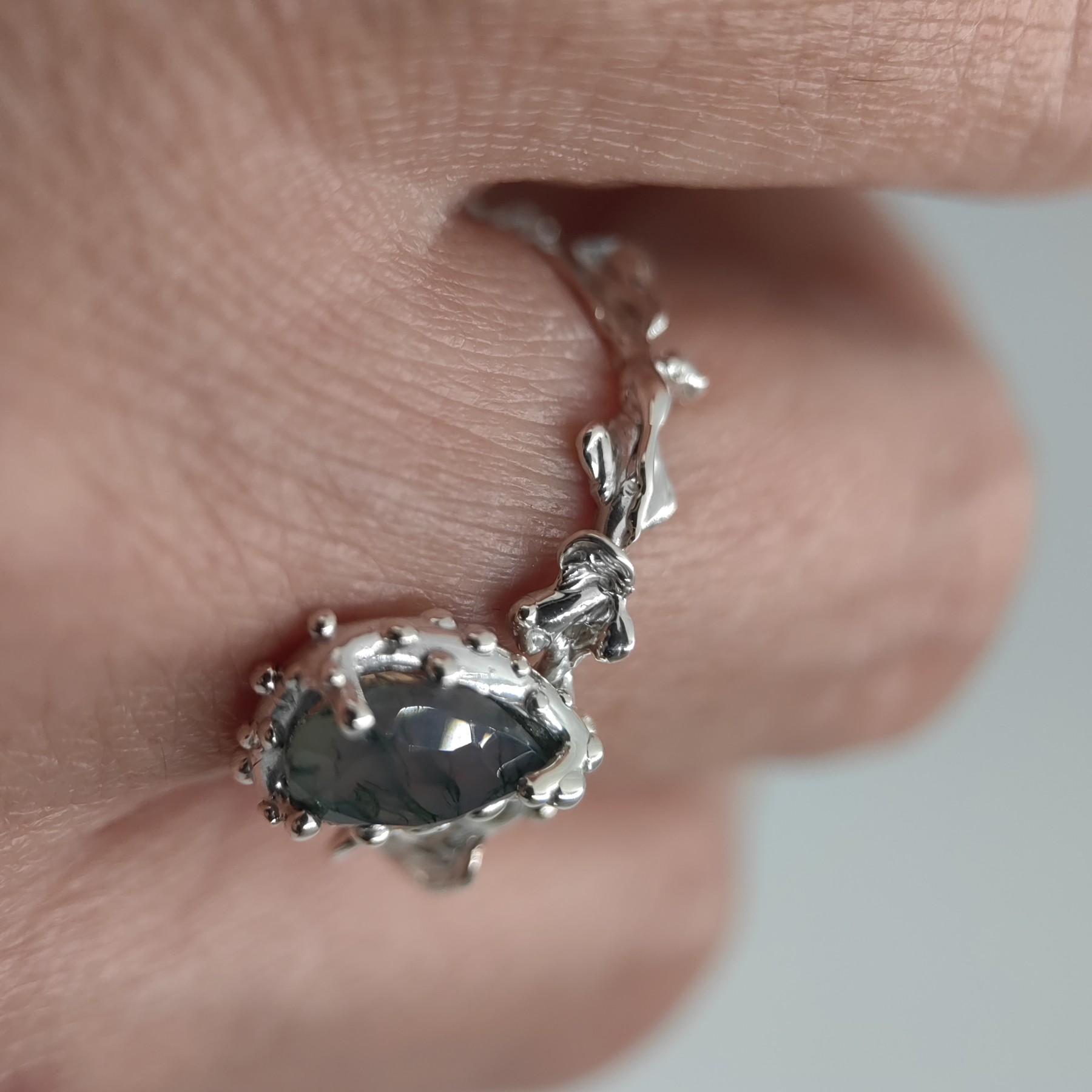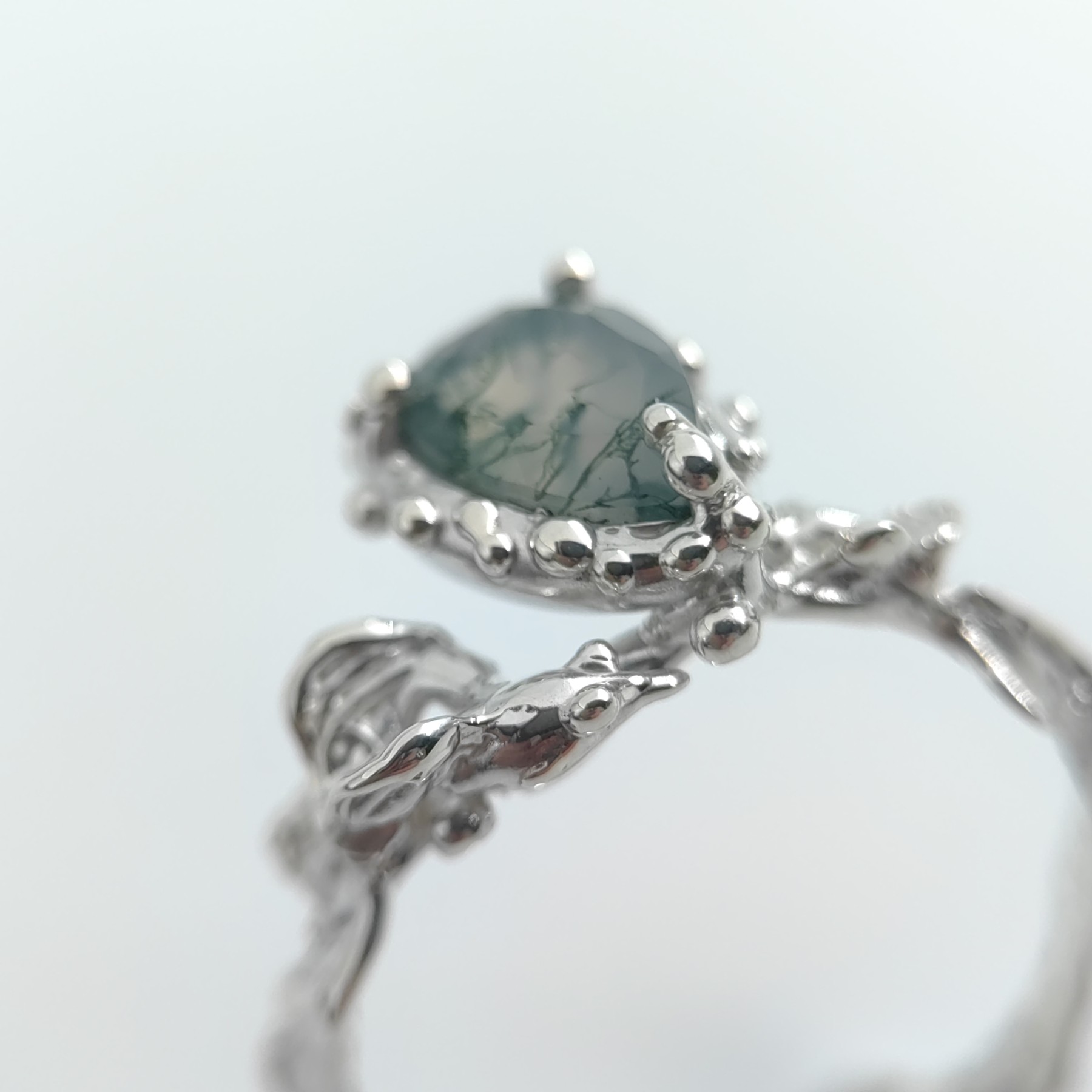 Opis "Wave Moss Agate Silver Ring • Size 59 • Unique 1/1"