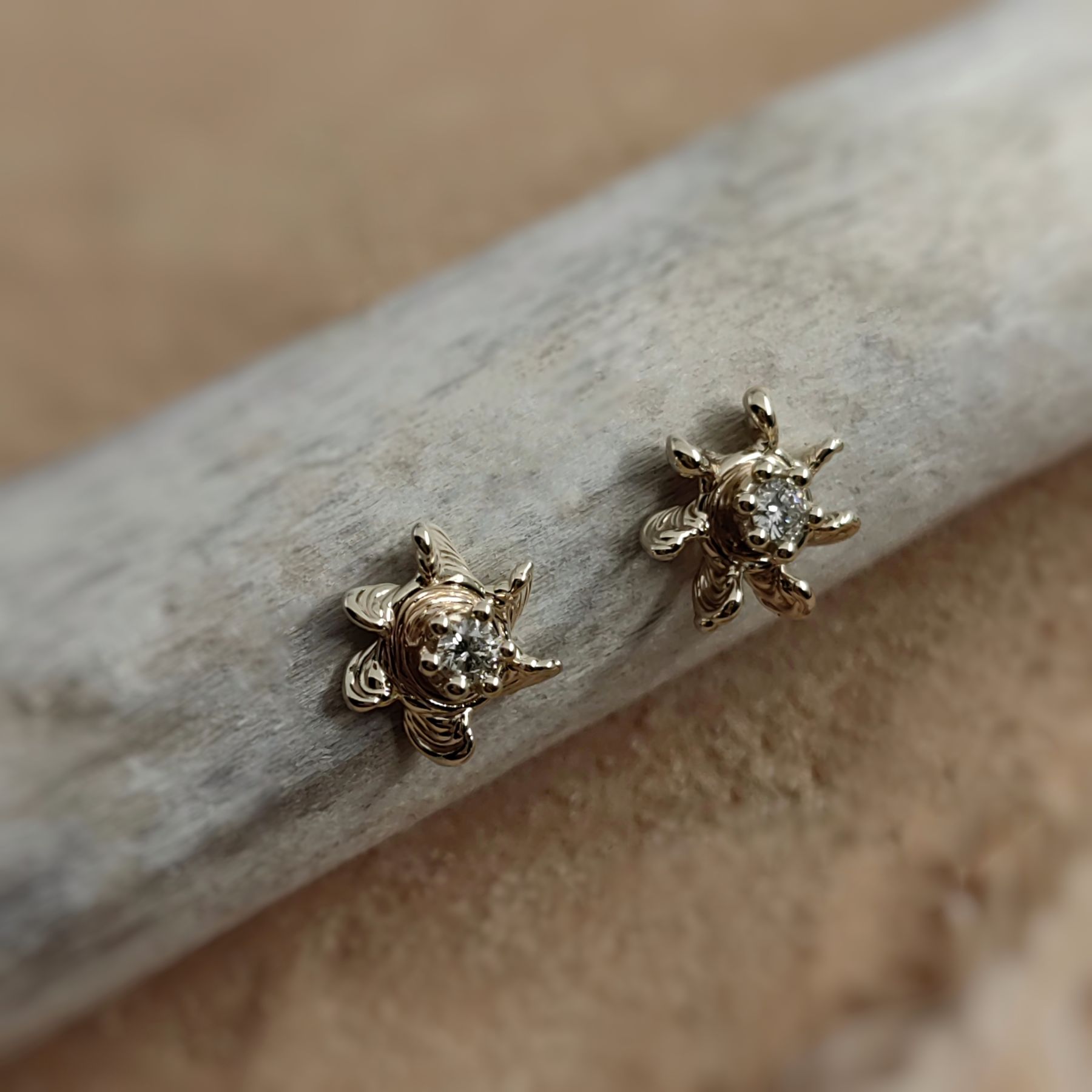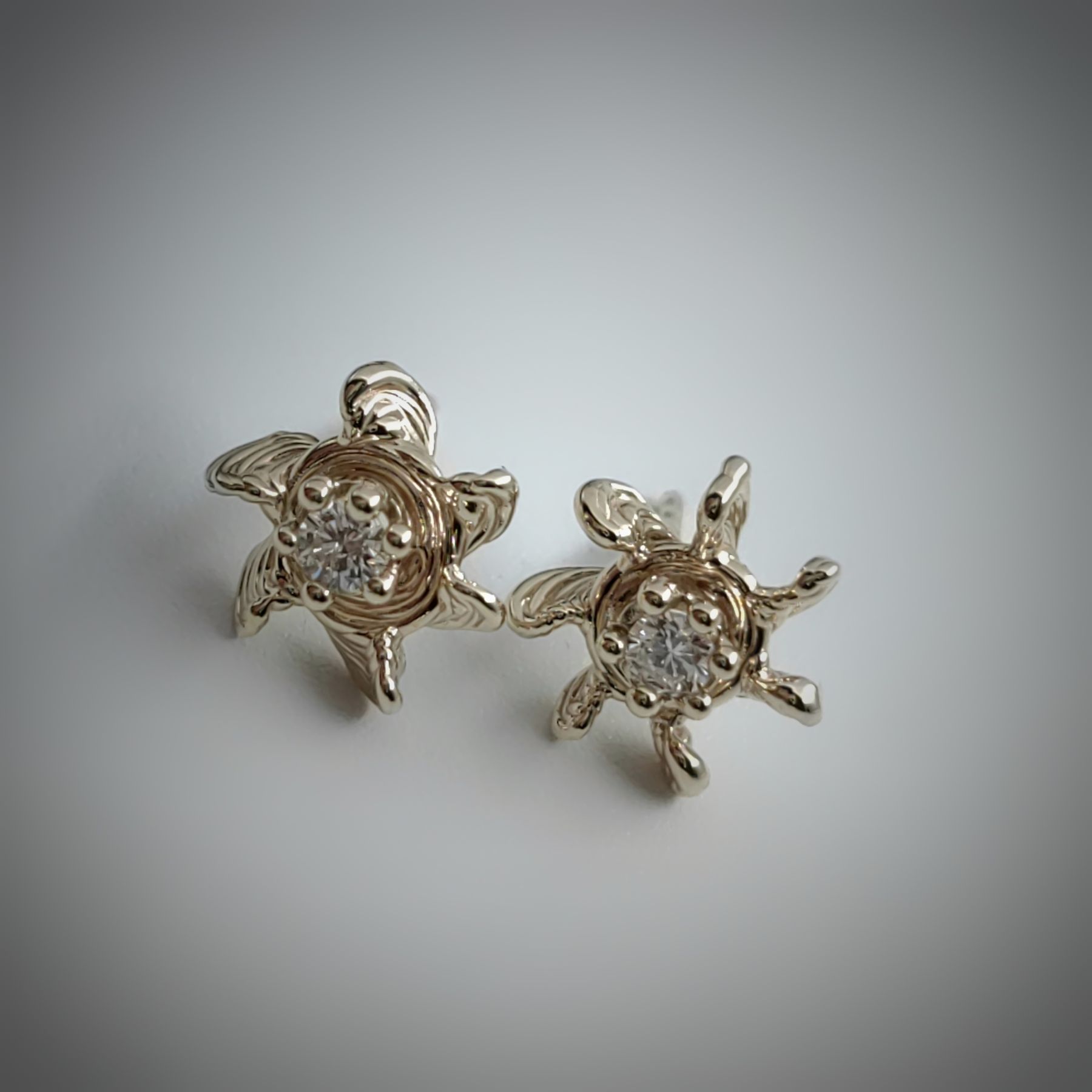 Wave 0.06ct White Diamond Star Gold Earrings • Unique 1/1