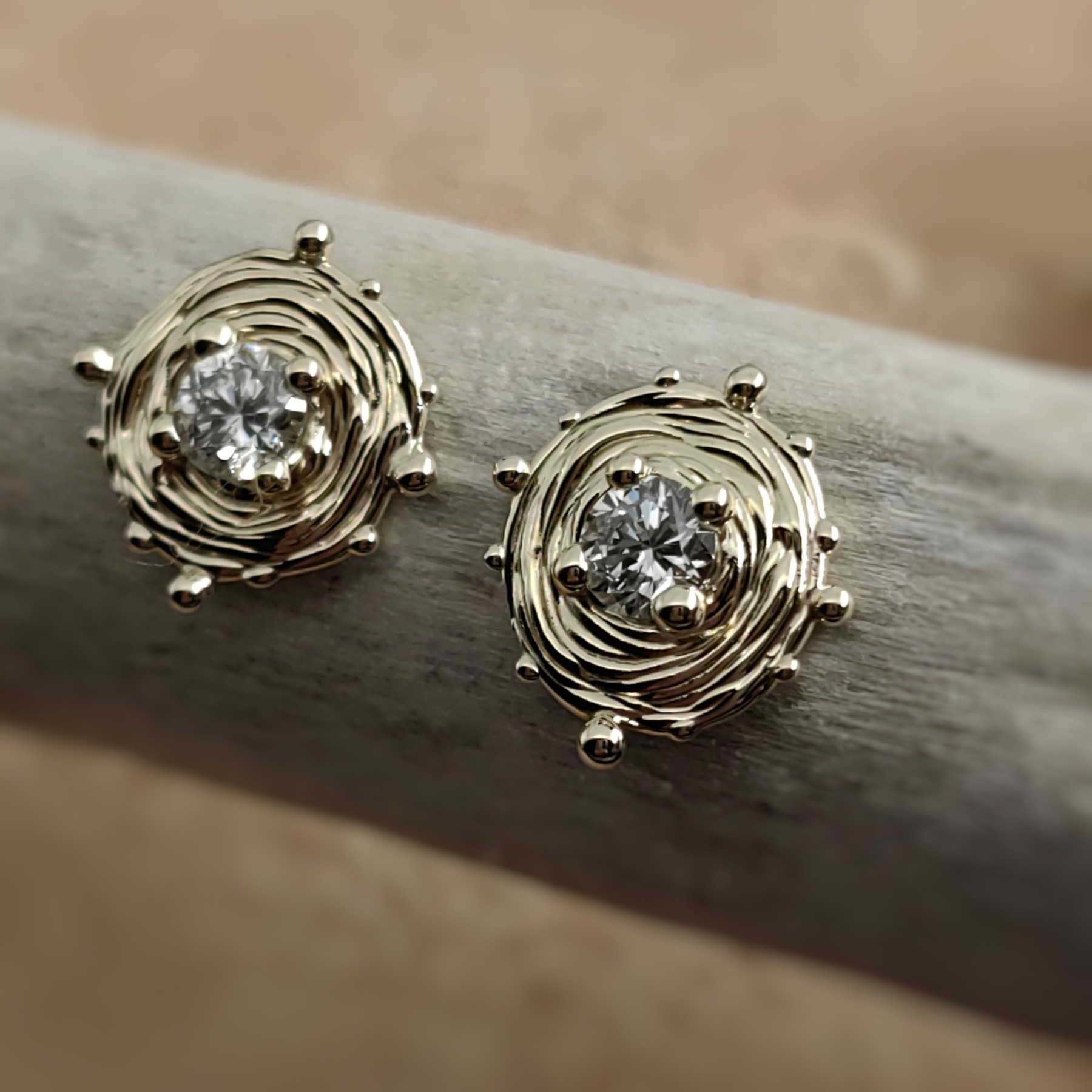 Wave 0.25ct White Diamond Gold Earrings • Unique 1/1