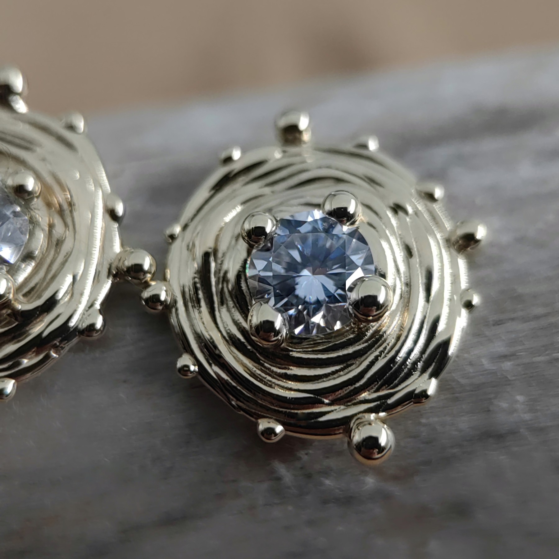 The earrings contain 0.25 ct and 0.26 ct lab-grown diamonds, respectively, to balance the design.