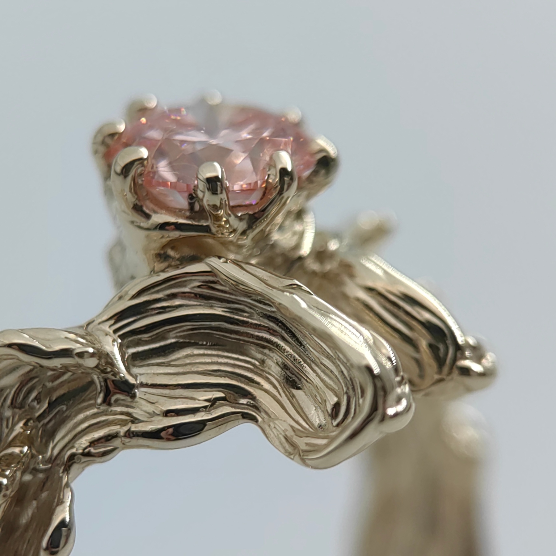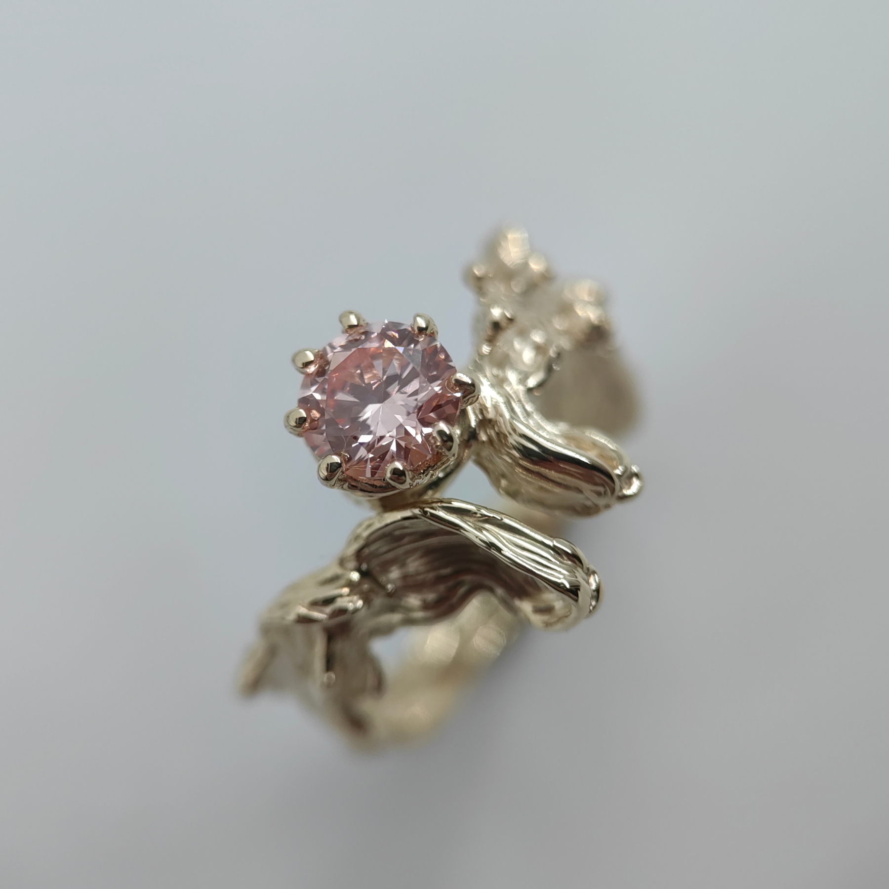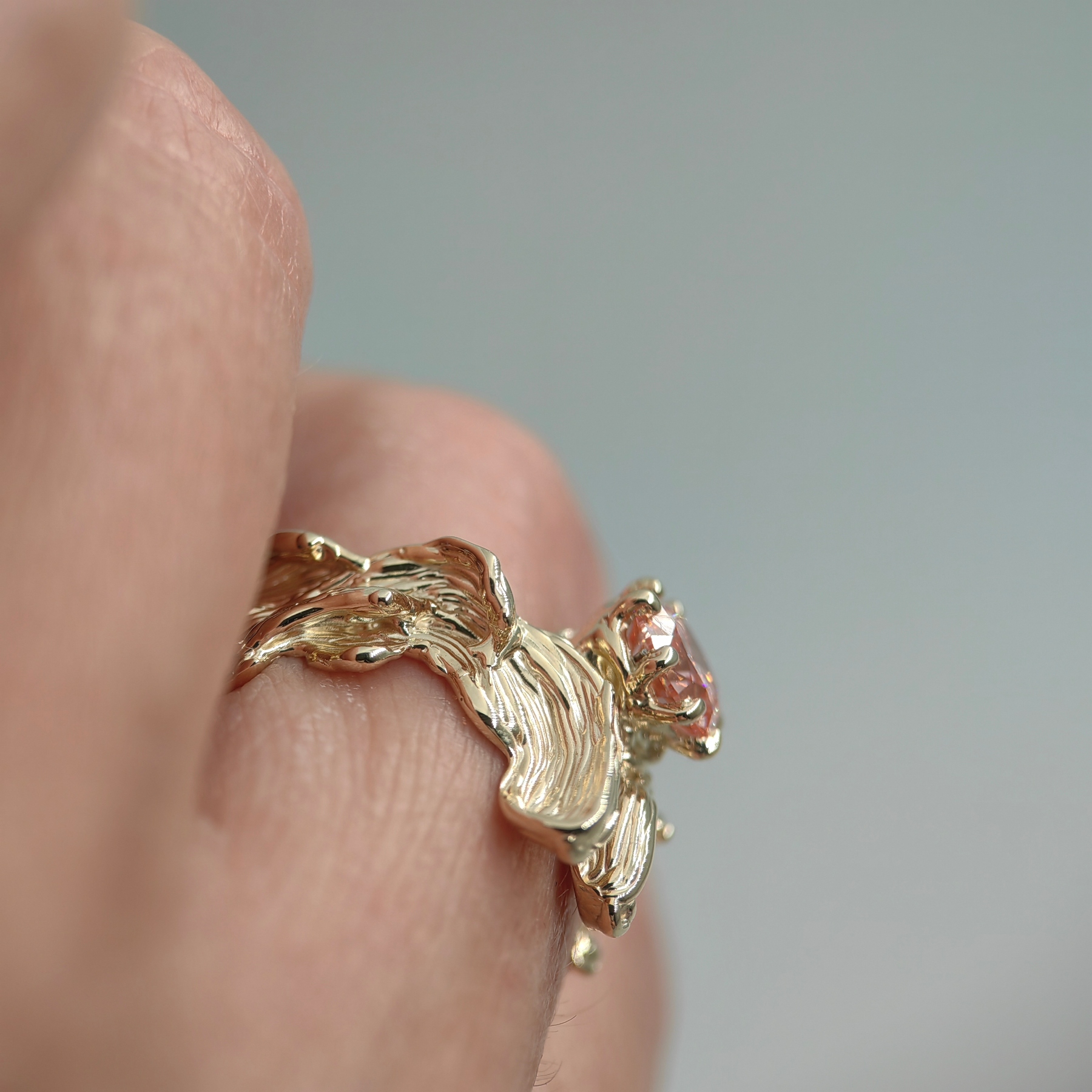 Soft, organically shaped 9K yellow gold embraces a round 1.01 ct pink lab grown diamond, radiant and refined. Its gentle hue reflects warmth, intimacy, and understated luxury.
