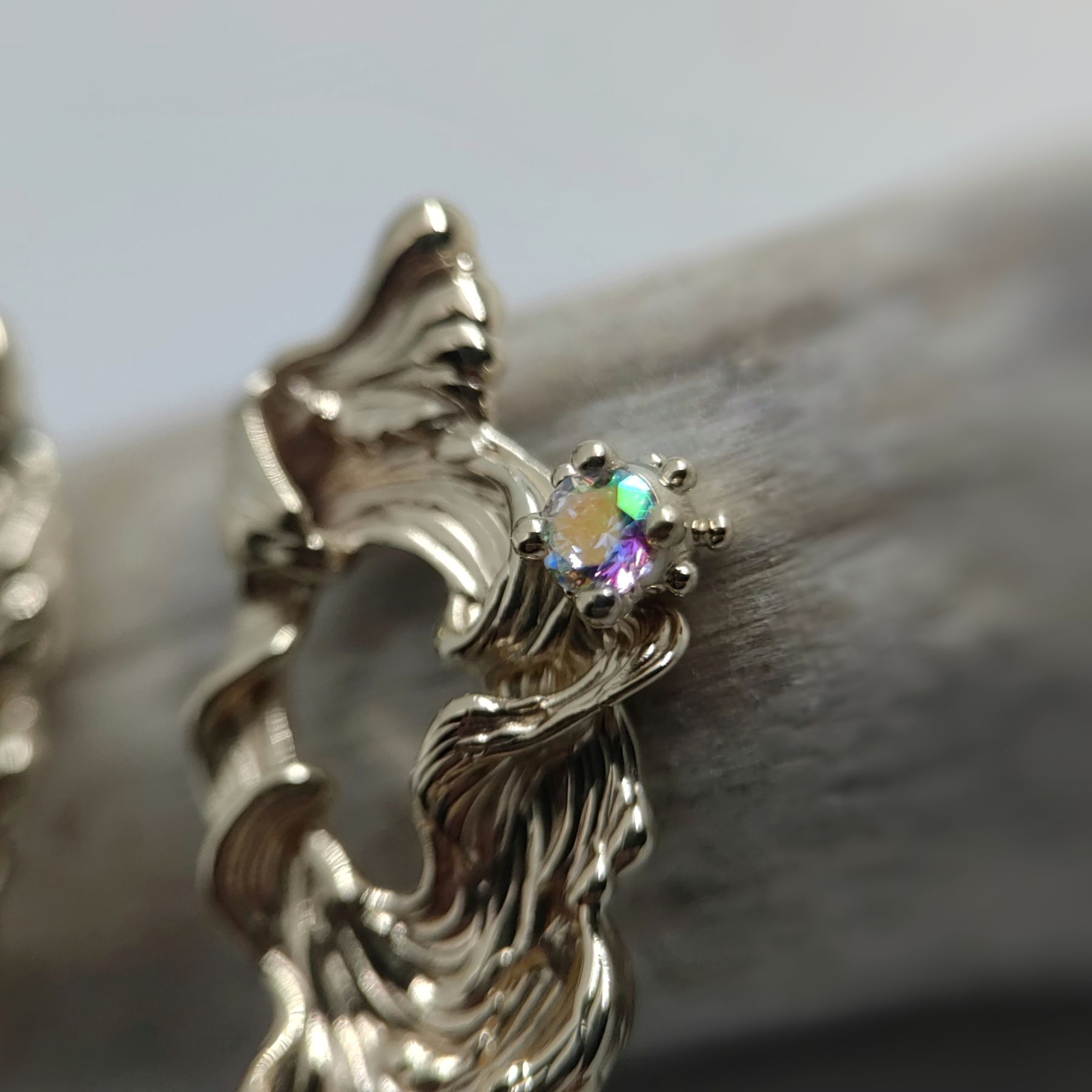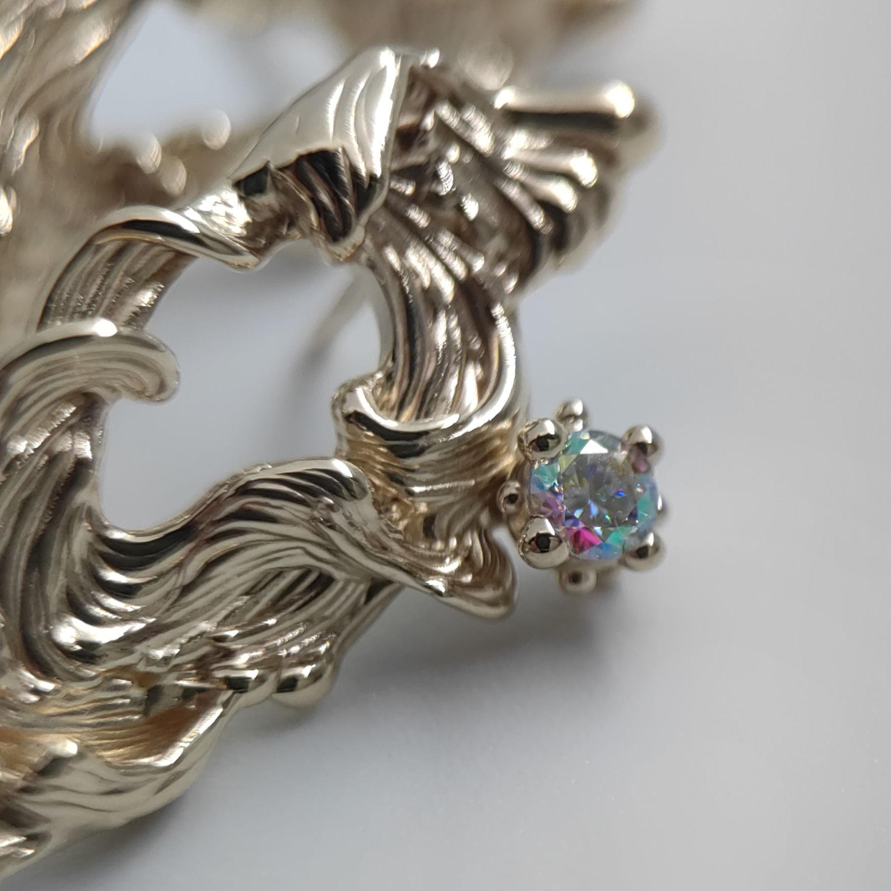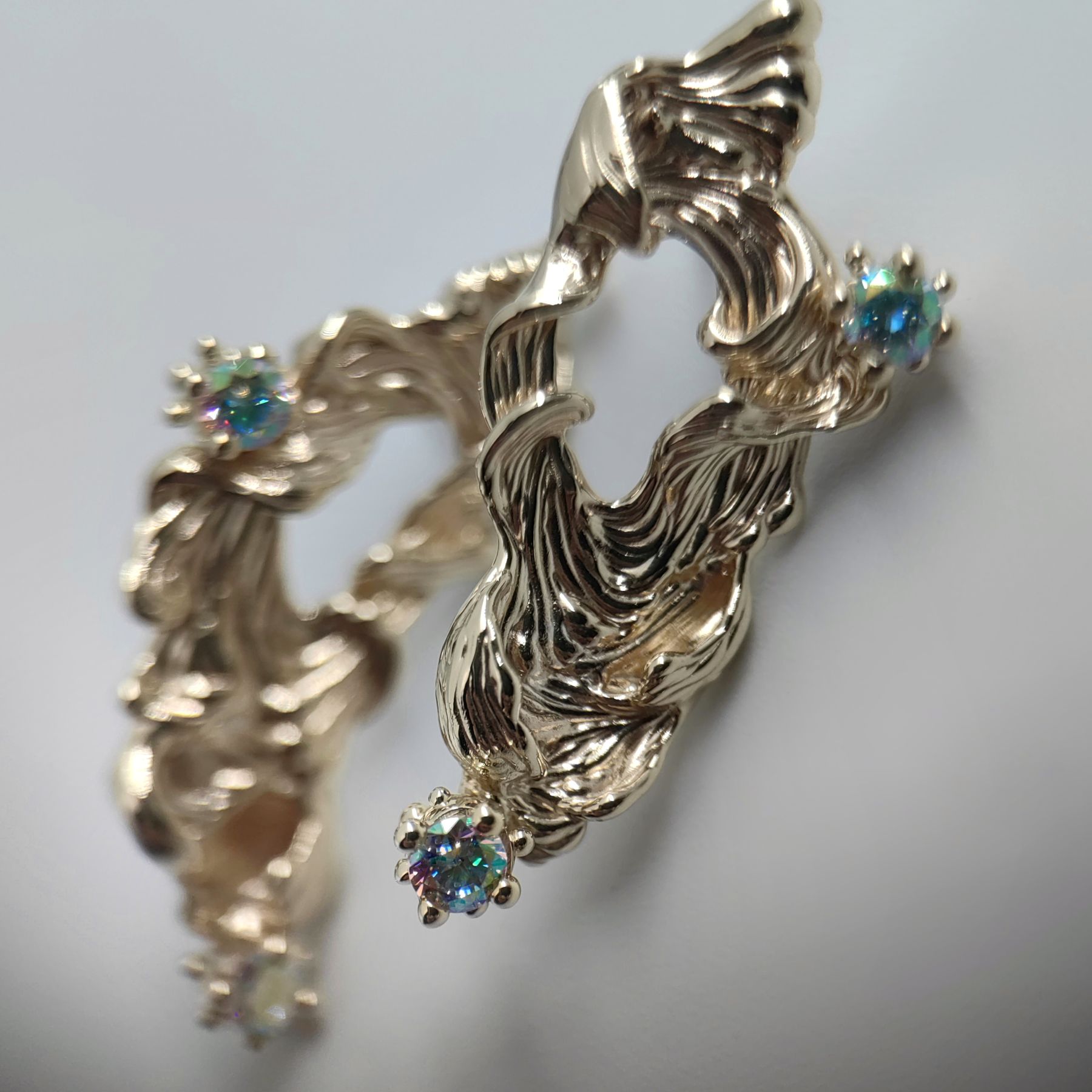 Statement earrings inspired by waves on the ocean's surface and mermaids — crafted in 9K yellow gold, set with a beautiful sparkling nanogem.
