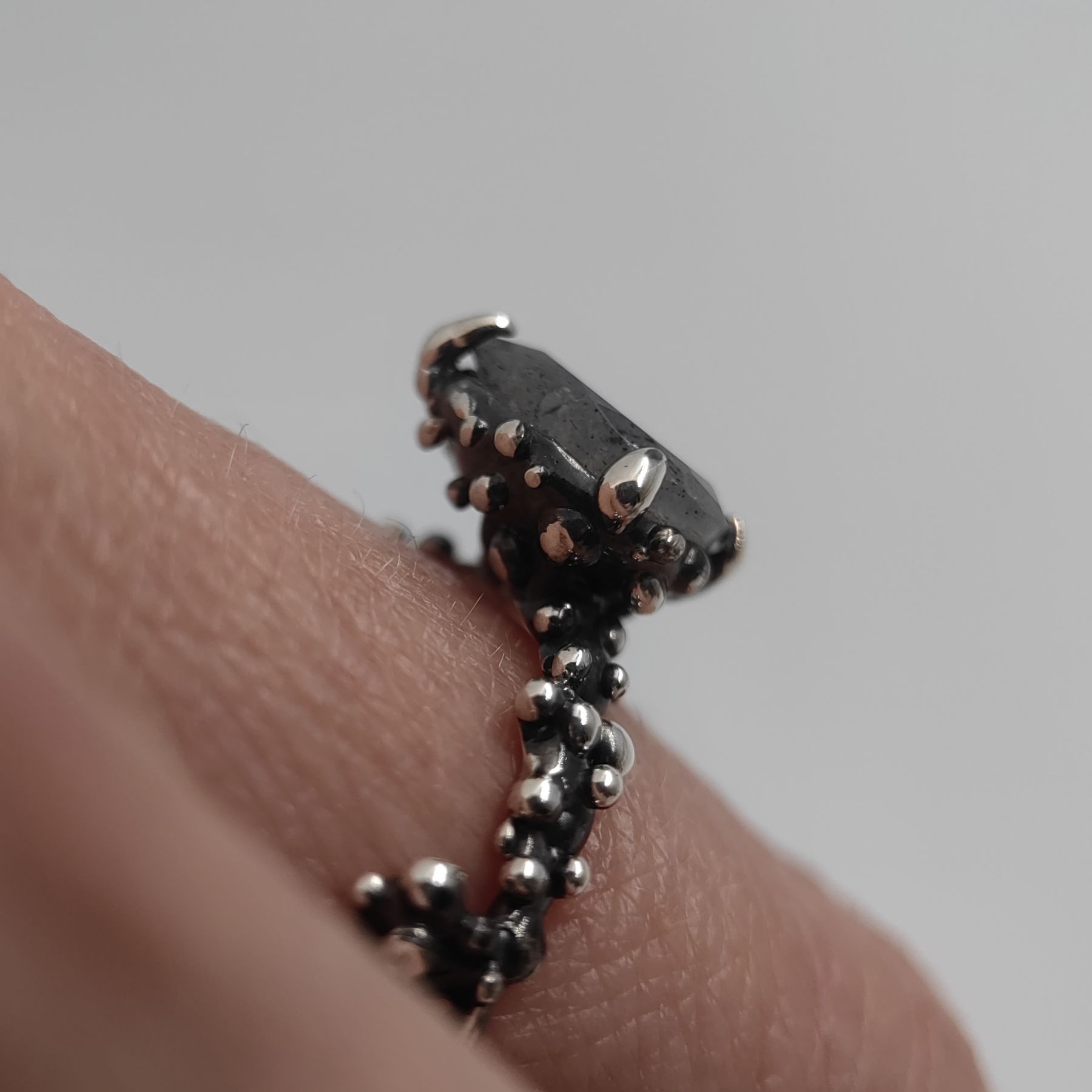 The stone is set by hand in organically shaped setting with pronounced prongs, and inspired by coral forms.