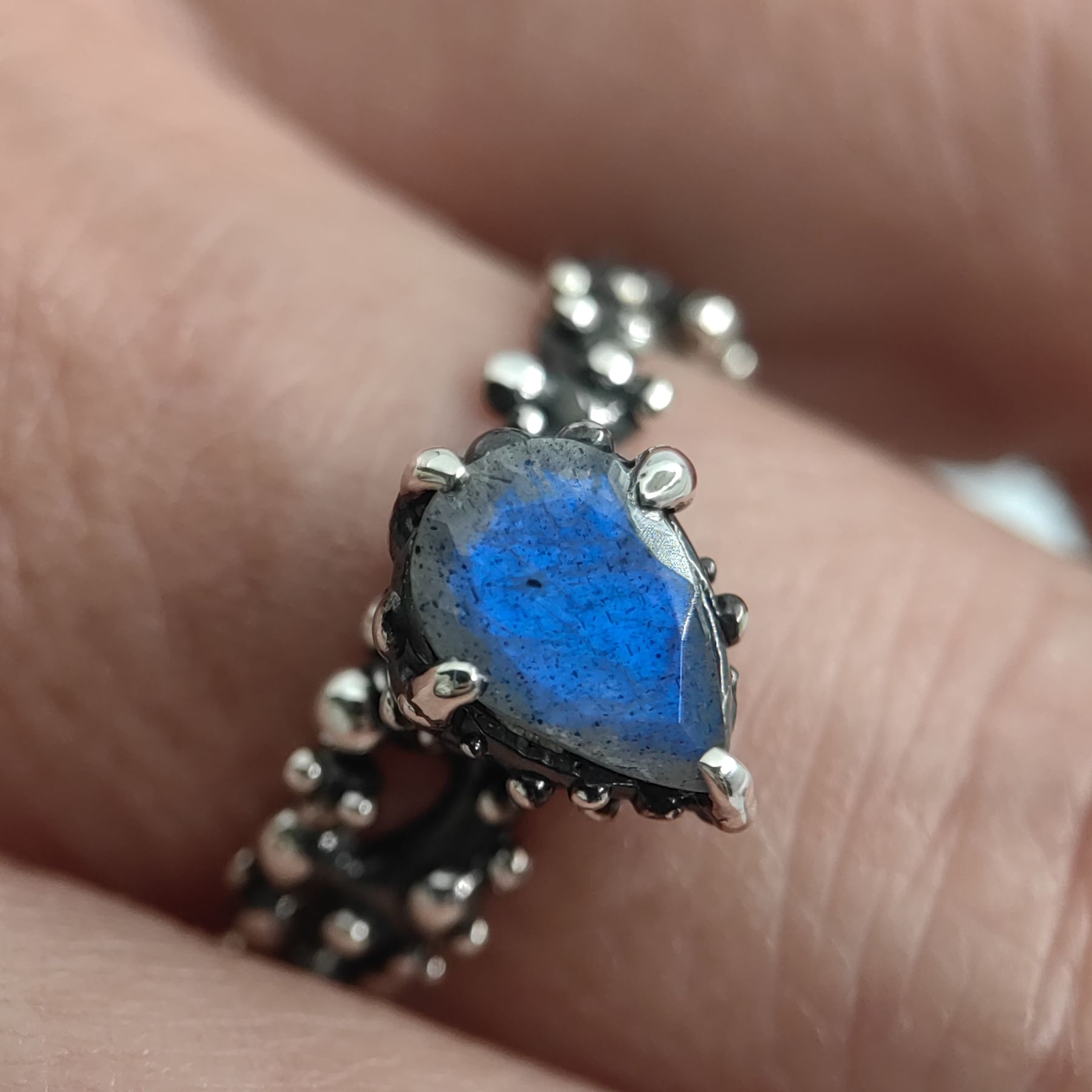 Wave Blue Pear Labradorite Silver Ring • Size 58 • Unique 1/1