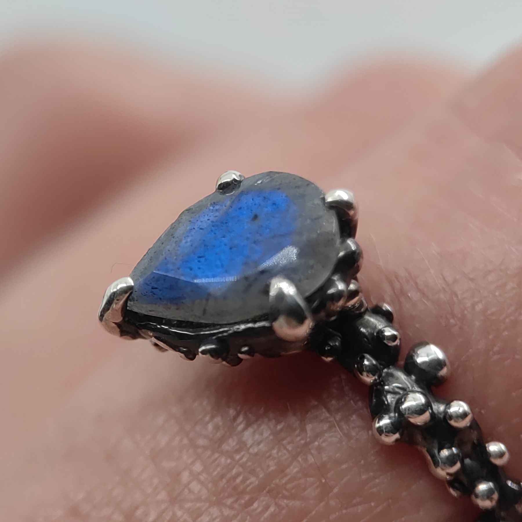 Description of "Wave Blue Pear Labradorite Silver Ring • Size 58 • Unique 1/1"