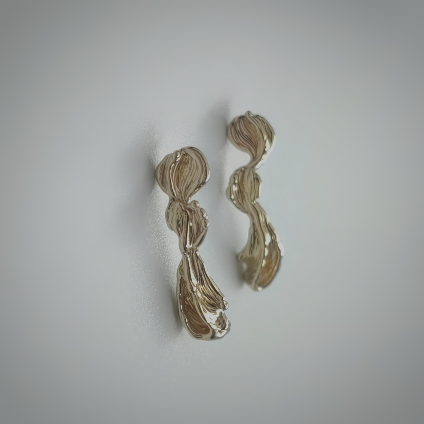 Description of "Wave Long Stud Gold Earrings • Unique 1/1"