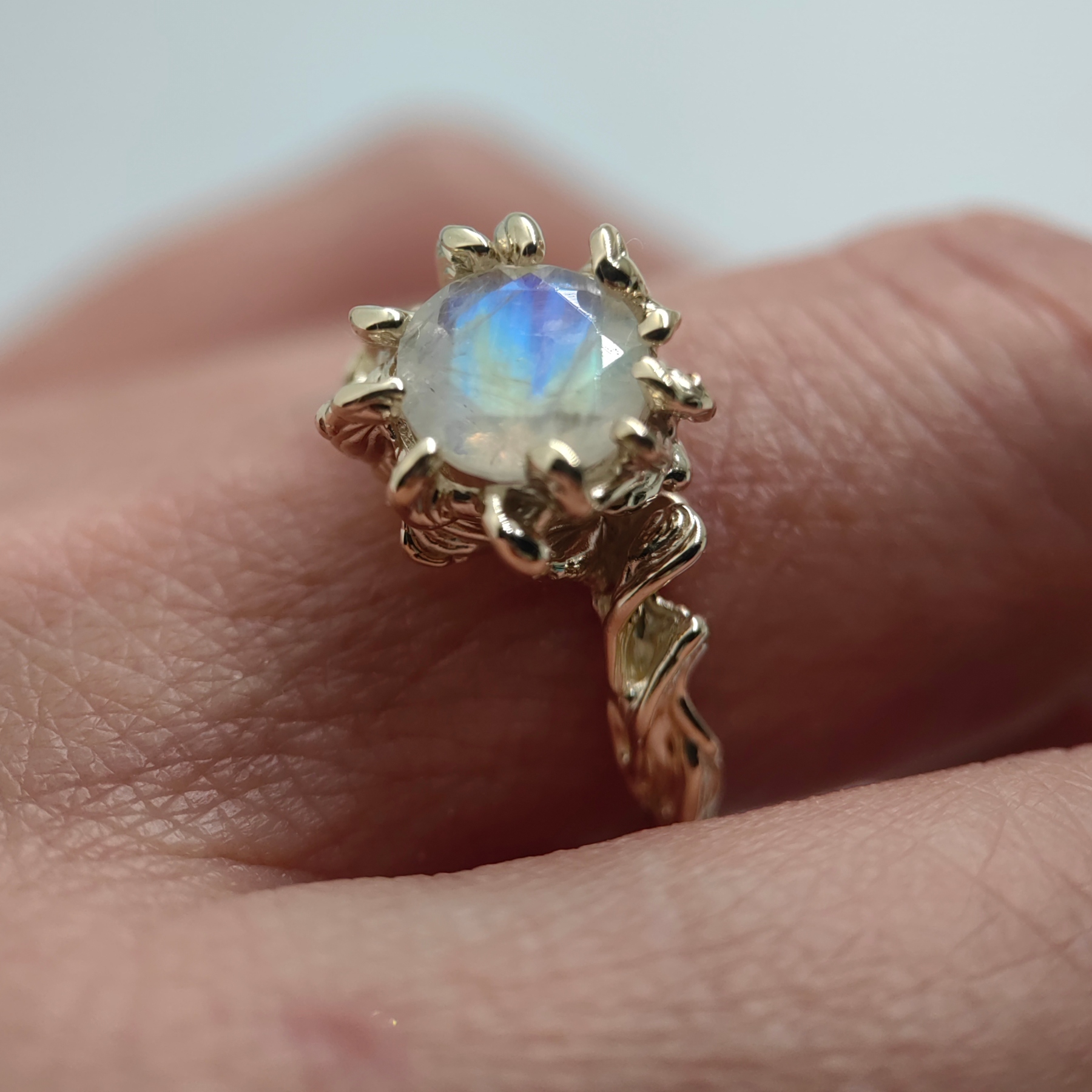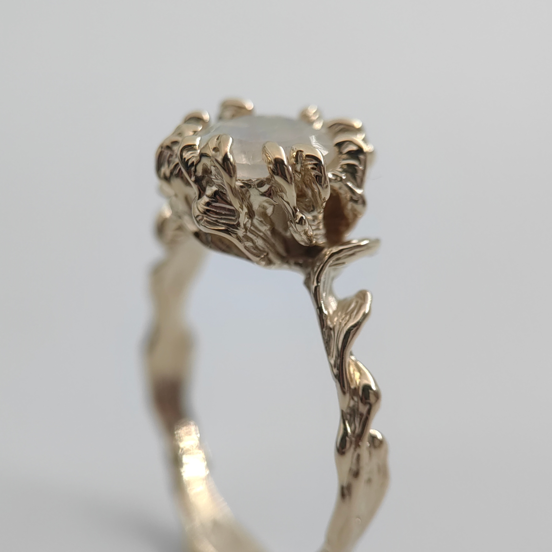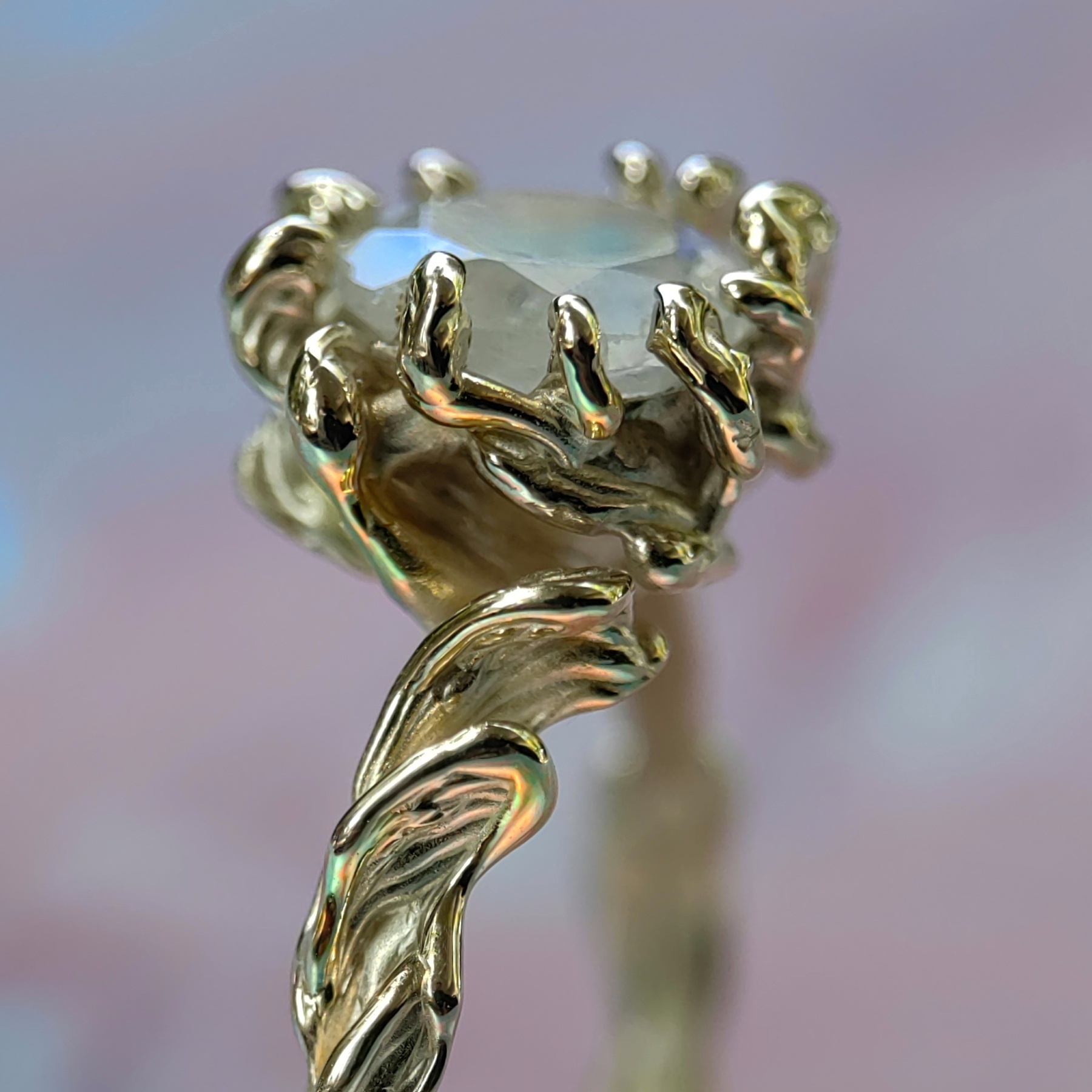 Wave Moonstone Gold Ring • Size 63 • Unique 1/1