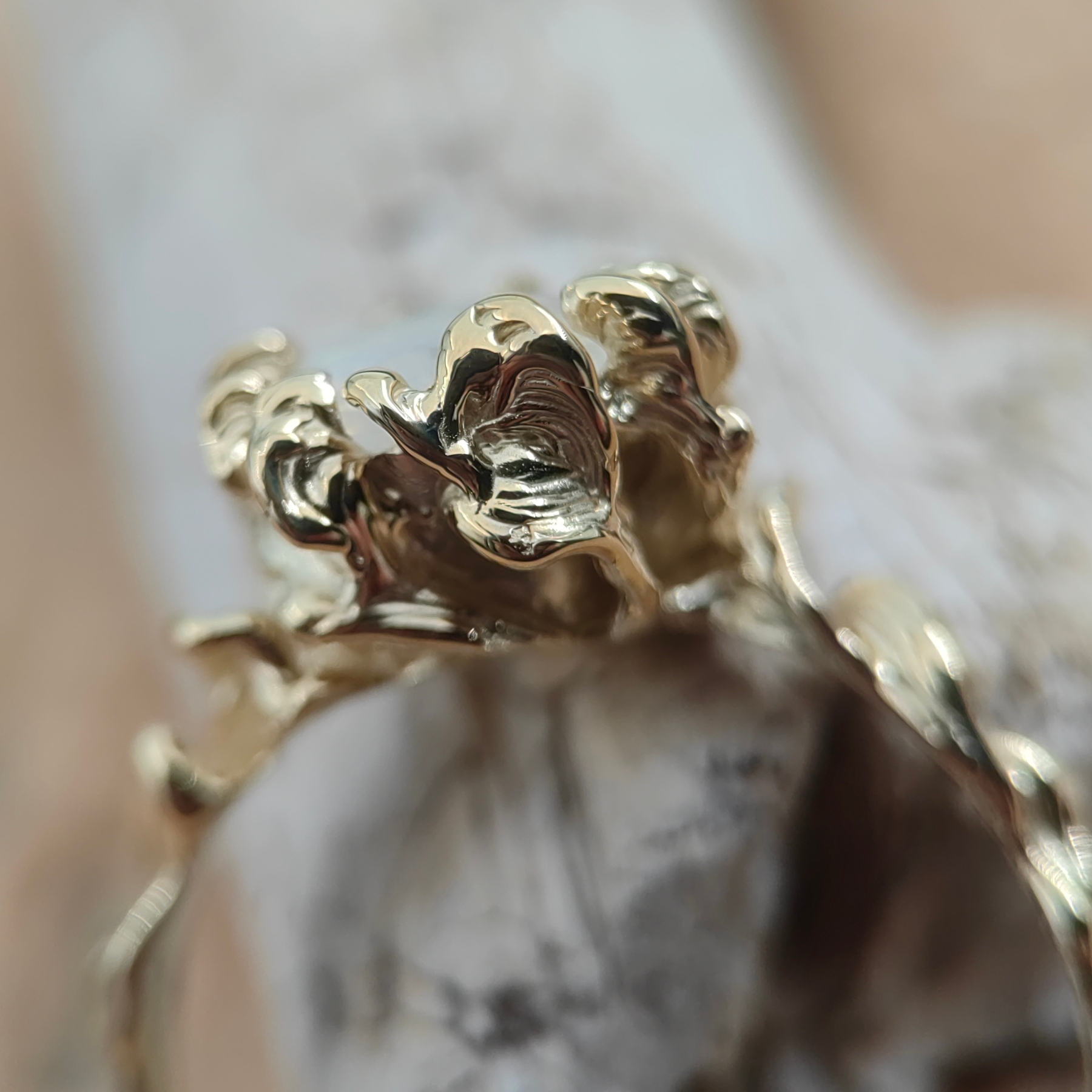 This enchanting 8K yellow gold ring captures the magic of the sea, with a design as unique and fluid as the waves themselves.