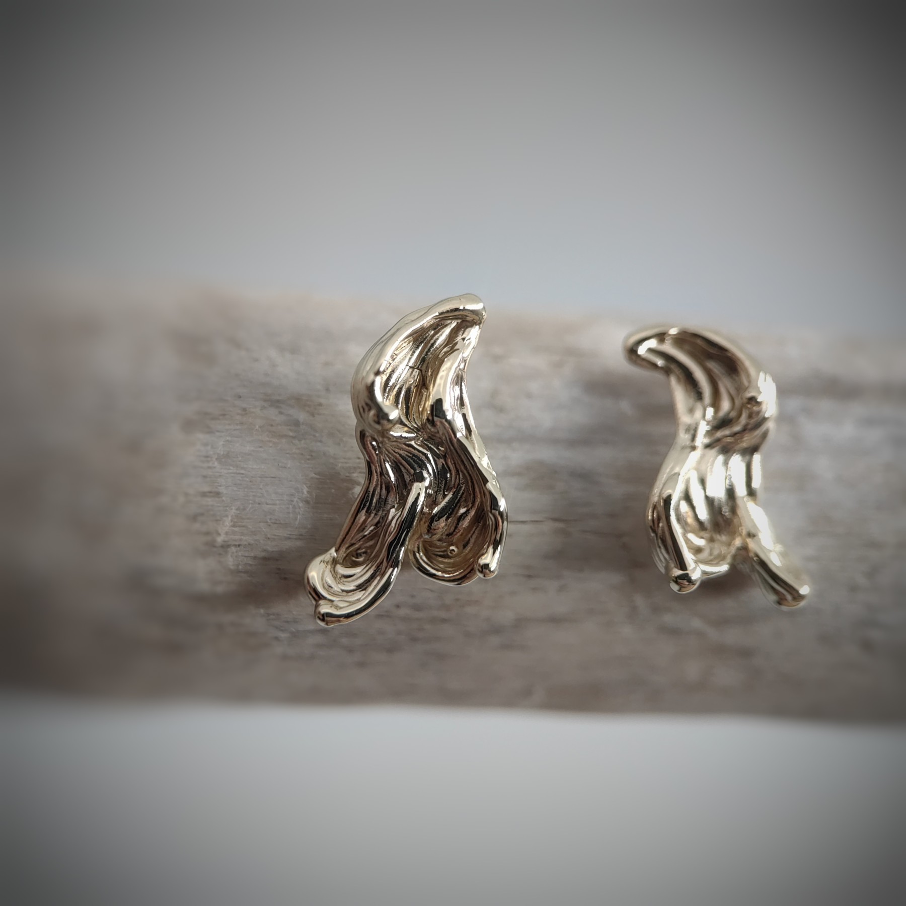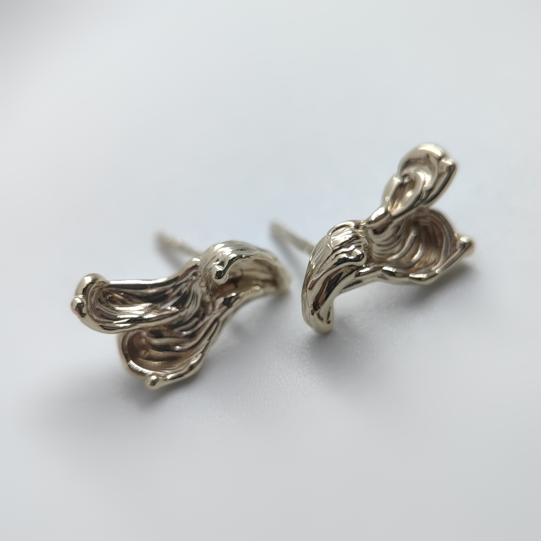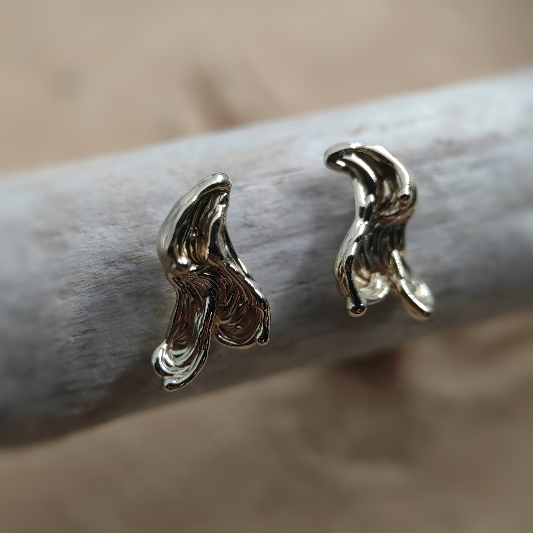 Stud earrings shaped like breaking waves – a unique piece of jewellery in 9K gold.